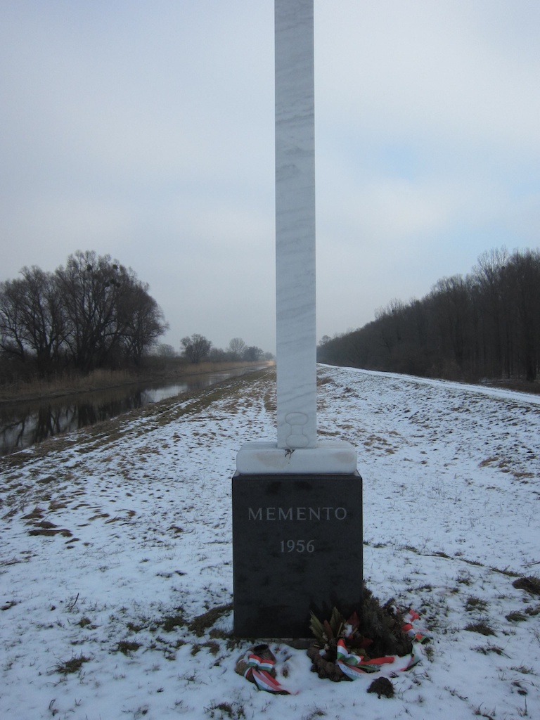 You couldn’t miss the cross. It was on the left hand side of at the bridge’s end in Hungary. A cross with worlds in Hungarian and German. At it’s base were a few wreaths, with ribbons in the colours of both countries, laying in the cold snow. We looked at for a while and I rang Dr. Kadas’s again from the Hungarian side and that was that. It was just a memorial. So we recrossed the Bridge at Andau back to Austria.