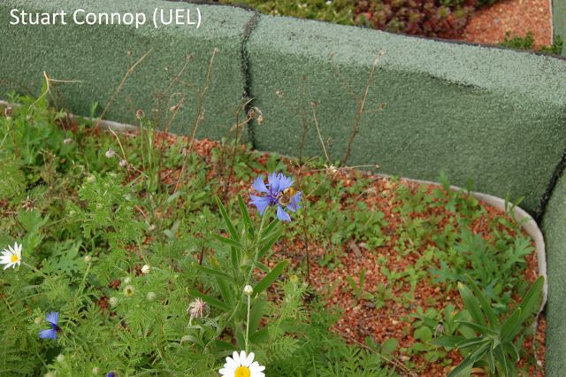 We have been saying it for a number of years and they have been recorded on roofs in Switzerland, This September Dr. Stuart Connop and Dr. G. Kadas identified a Shrill carder bee (Bombus humilis). It was seen foraging on a green roof.