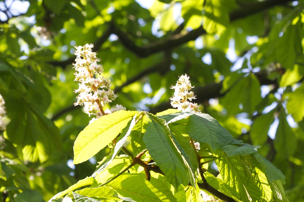 In comparison the Horse Chestnut leaves a huge fans, like the webbed feet of coots, they hang and have an almost regal air to them. Of course the flowers the stick up above the large drooping leaves. Beautiful tiaras of white flowers. Beneath the Horse Chestnut is all dappled shade, much darker and cooler than beneath the Lime.
